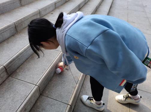 下午一点,所有志愿者乘车前往烈士陵园,在陵园前的国旗下集合拍照,随后对烈士陵园的阶梯进行了清理,志愿者不顾登高的劳累认真清理地面上的垃圾、杂物等,并装进随身所带的垃圾袋中。活动过程中,志愿者们纷纷在革命烈士之墓前悼念默哀,表达对革命先烈的怀念与崇敬。