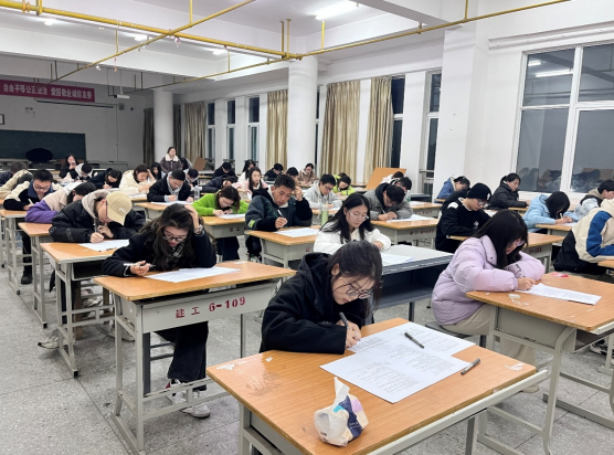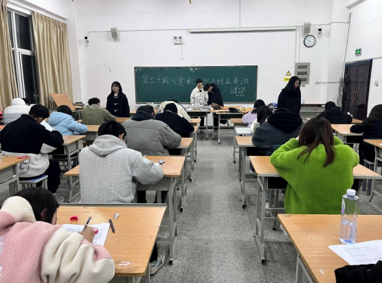 入党积极分子们到场后,监考员下发试卷并强调了党校结业考试的考场纪律,要求同学们诚信应考,并将手机上交至手机袋。在考试过程中,同学们本着诚实守信、严肃考风考纪的原则,认真地完成自己的试卷。监考员们也尽职尽责,监考过程中严肃认真,为同学们塑造一个良好的考试氛围。本次考试内容主要涵盖党的基本知识、党的二十大精神、党史学习教育等内容。考试现场,同学们沉着冷静,认真作答,在规定时间完成本次考试。