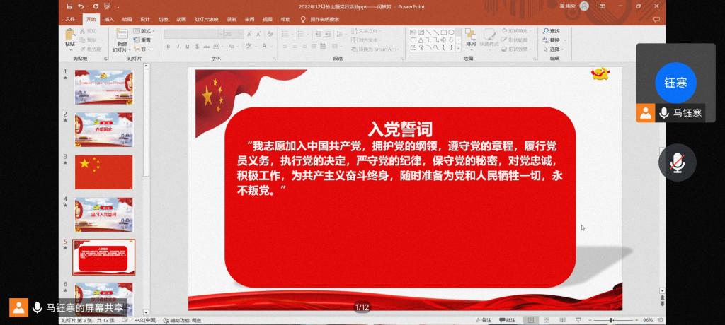 (通讯员 卿天锱)2022年12月18日下午6点30分,威廉希尔williamhill全体党员线上开展了以“学习贯彻党的二十大精神,奋力冲刺全年目标任务”为主题的党日活动。