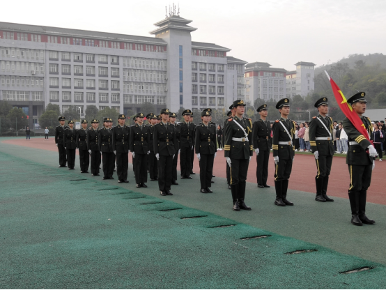 七点十分升旗仪式正式开始。迎着朝阳,国旗护卫队成员踏着整齐铿锵的步伐来到了国旗台下,《义勇军进行曲》响彻整个操场,全体师生注视着五星红旗,点燃了同学们的爱国热情。升旗仪式完成后,员工代表余昊阳进行了国旗下的讲话,他希望土建学子们在新时代争做新青年,把握机遇,在日常生活中要有认真扎实的态度,不忘初心,砥砺前行。
