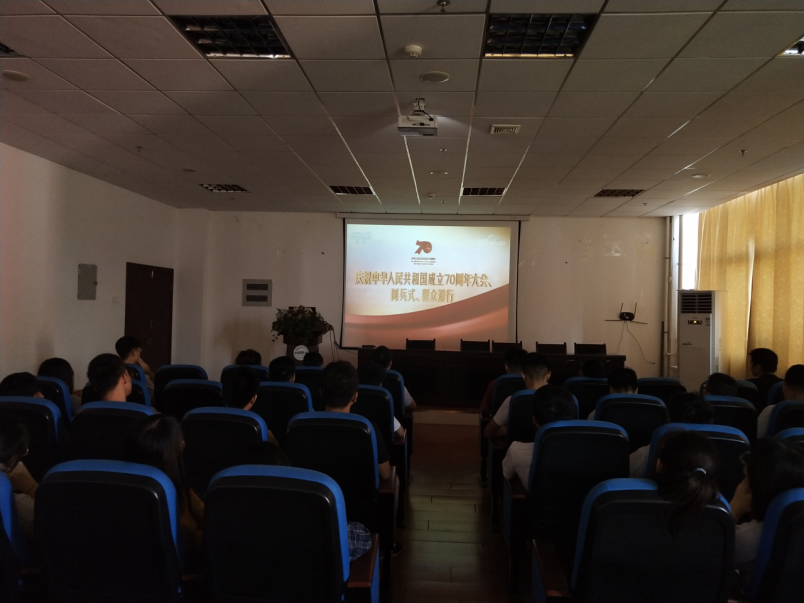 (通讯员 刘曼玉)为庆祝新中国成立七十周年,回顾过往的辉煌成就,展望未来新的征程,2019年10月1日,威廉希尔williamhill员工党支部组织党员及留校生于工科楼四楼报告厅观看阅兵仪式,院党委副书记弋兵到场和同员工们一起观看阅兵仪式。