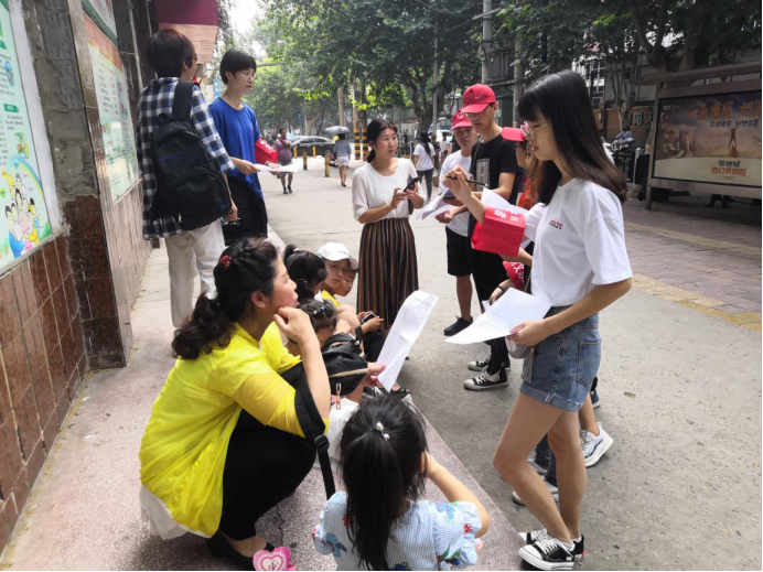 活动伊始,余昊阳就本次活动的的环境和内容,将志愿者们分为两组。一组负责整治张贴或发放小广告、小卡片的行为;对流动小商贩沿街摆摊设点的行为进行劝导;并对随意乱停的共享“小黄车”进行了合理地摆放。另一组负责派发支教宣传资料,与社区附近的路人和居民进行密切交流、互动,为他们详细讲解支教的具体活动。经过近两个小时的走访宣传,大部分居民对支教活动产生了浓厚的兴趣,纷纷积极响应并表现出了极高的热情。
